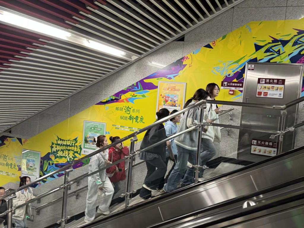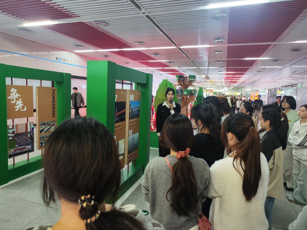 当师生们齐聚在被誉为“建在红岩精神起源地的地铁站”的红岩村站2号口时,瞬间被眼前这座独具特色的红色文化空间所震撼。站内,以“红岩精神”为主题的艺术墙、革命历史图片展陈以及随处可见的红色文化符号,共同营造出浓厚的红色教育氛围,仿佛将大家带回到了那个波澜壮阔的革命年代。