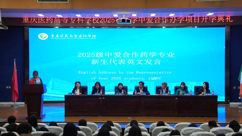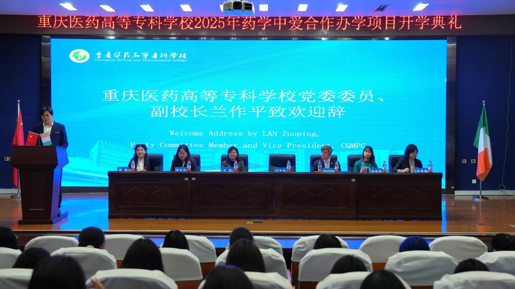 2025年11月1日,重庆医药高等专科学校与爱尔兰大西洋理工大学合作举办的第三届药学高等专科教育项目开学典礼在重庆医药高等专科学校图书馆学术报告厅隆重举行。爱尔兰大西洋理工大学生命科学学院院长内维尔·麦克莱纳根教授,学校党委委员、副校长兰作平,教务处、药学院(中药学院)相关负责同志及师生代表出席了典礼。典礼由唐倩主持。