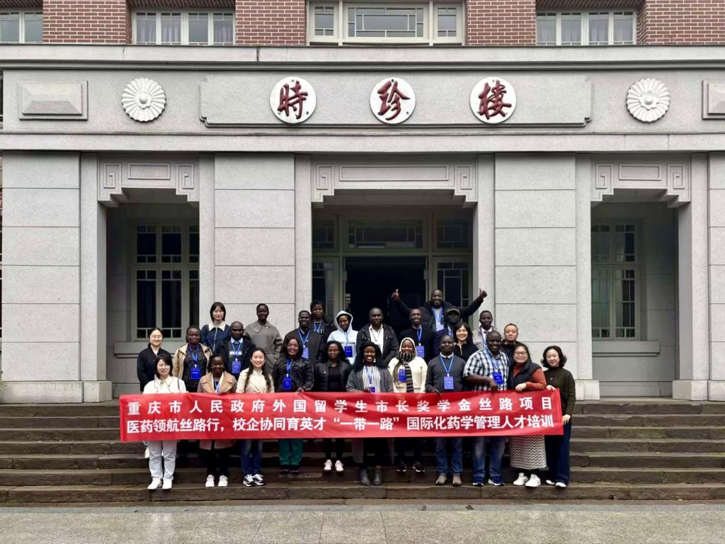 2025年10月29日,重庆市人民政府外国留学生市长奖学金丝路项目:医药领航丝路行,校企协同育英才——“一带一路”国际化药学管理人才培训开展实践教学。乌干达代表团一行20人在重庆医药高等专科学校药学院(中药学院)副院长苏湲淇陪同下,前往重庆市中药研究院参观重庆中药博物馆。