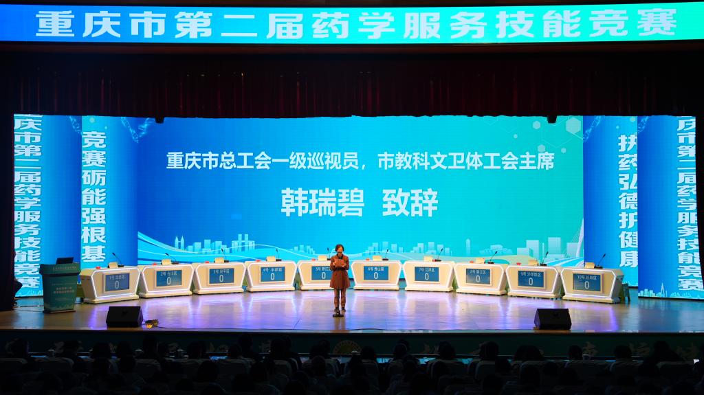 重庆市第二届药学服务技能竞赛,由市卫生健康委、市总工会联合主办,重庆医药高等专科学校、重庆市教科文卫体工会承办,于12月4日启幕。本次赛事为期两天,全程在重庆医药高等专科学校进行。大赛旨在贯彻落实国家基层药品联动机制建设要求,促进全市药学服务高质量发展,营造学知识、练本领、强技能、夯基础的浓厚氛围,弘扬劳模精神、劳动精神、工匠精神。我校设竞赛专家委员会,负责开展命题、答疑、评判和赛事组织等工作。