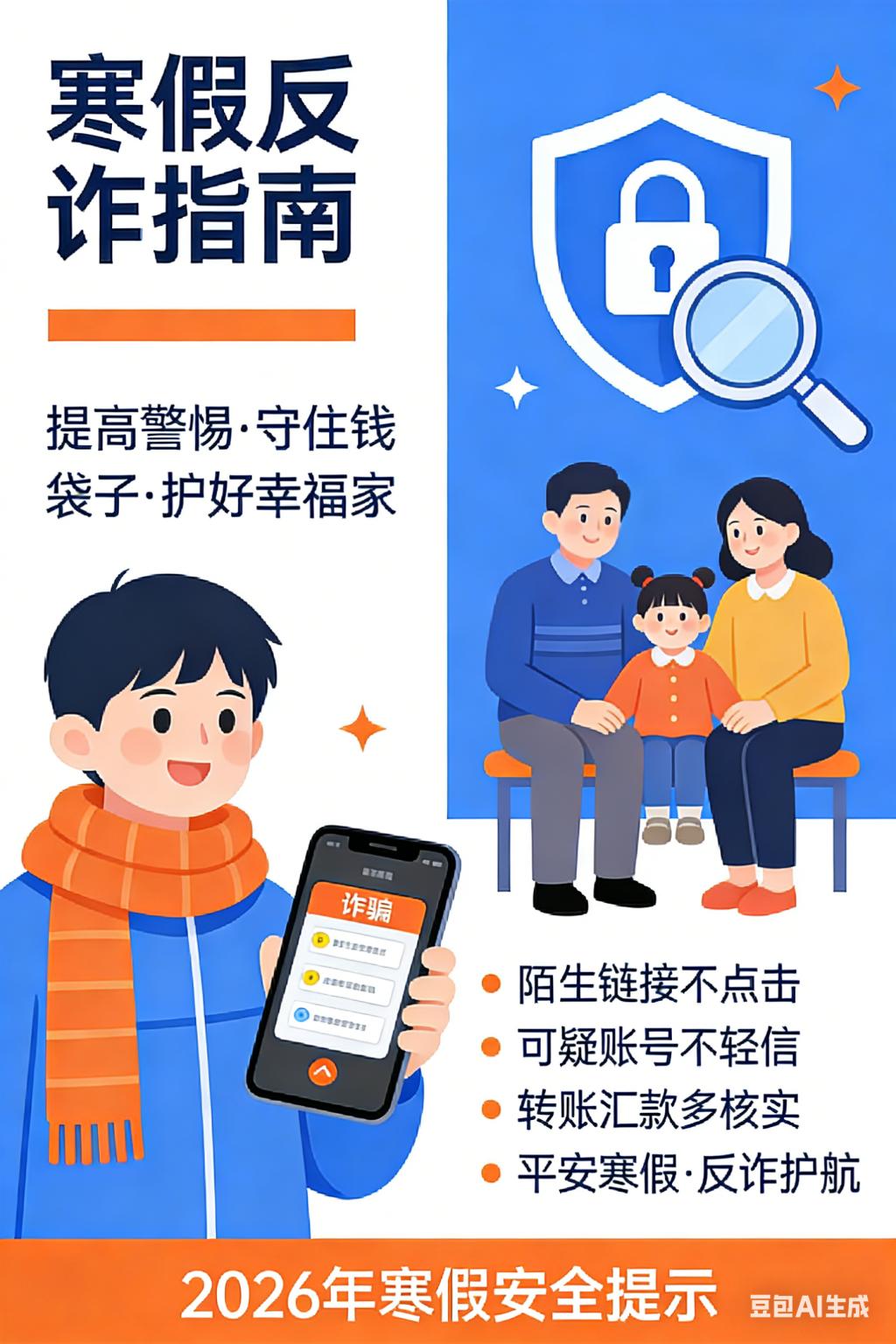 提高反诈警惕,牢记防范要点,守住钱袋子,护好幸福家,平安度过寒假。