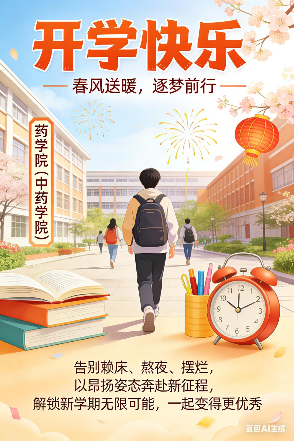 春风送暖,逐梦前行药学院(中药学院)的宝子们,开学快乐!愿我们以昂扬姿态,奔赴新征程,解锁新学期的无限可能,一起变得更优秀呀!