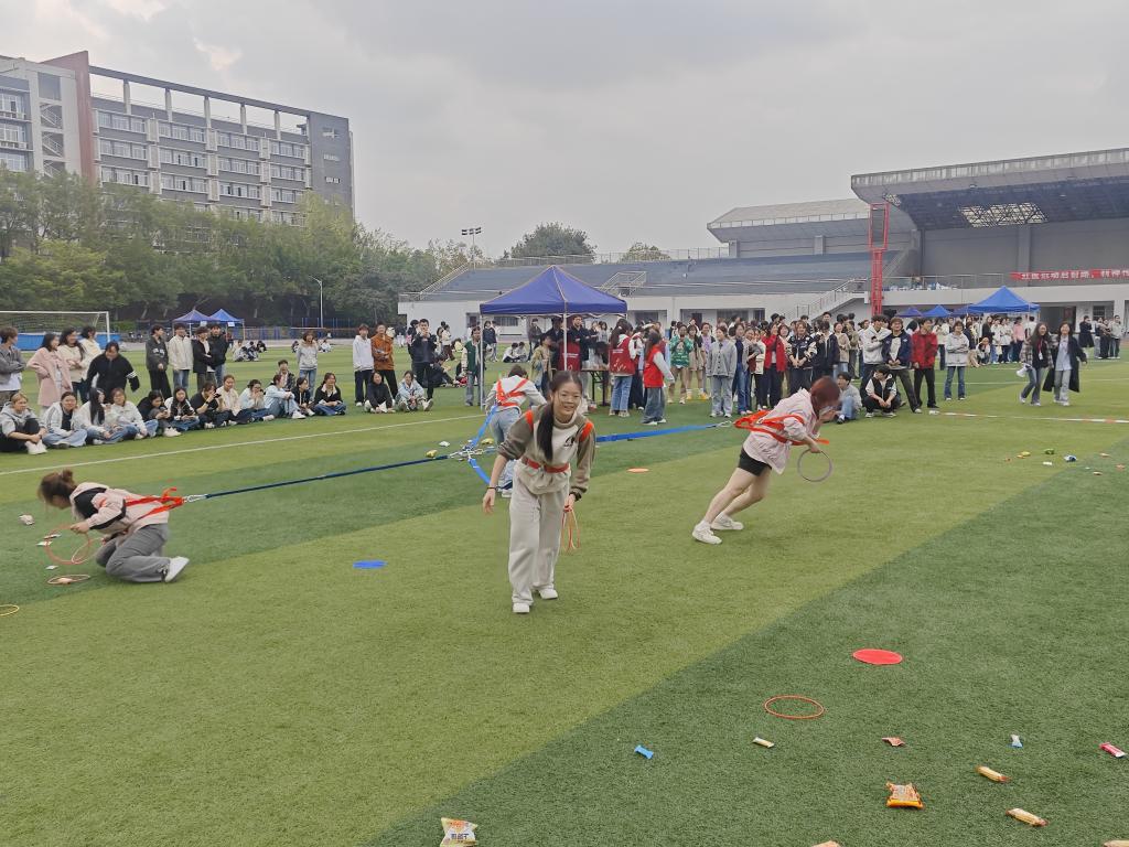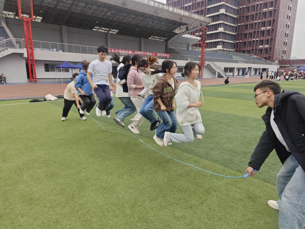 本次趣味运动会精心设置了摸石过河、拔河套圈、保龄球投瓶及集体跳长绳特色项目,学子们奋勇争先、默契配合,呐喊声与欢笑声此起彼伏;赛场下,文明助威、有序互动,充分展现了学院学生昂扬向上的精神风貌。